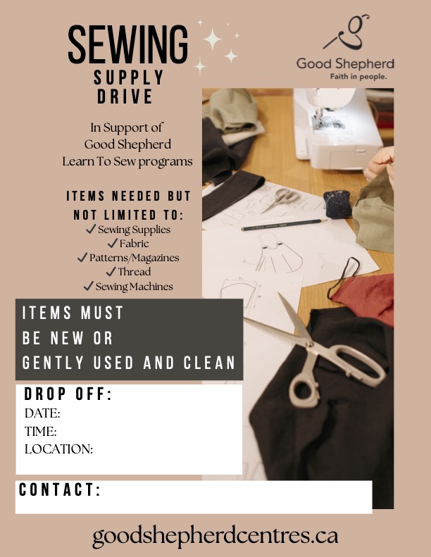 Has an initiative that is close to the hearts of the Good Shepherd. Their “Learn Sew” program provides individuals in their shelters with meaningful skills and opportunities for growth. They are currently seeking support in the form of sewing supplies and would be grateful if our members would consider donating sewing supplies; fabric; patterns, magazines, thread and sewing machines. Items can be new or gently used and clean.